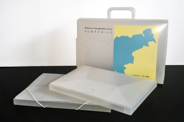 kovčki in mape narejene iz enoslojnega polipropilena z možnostjo potiska, različnih velikosti in načinov odpiranja.